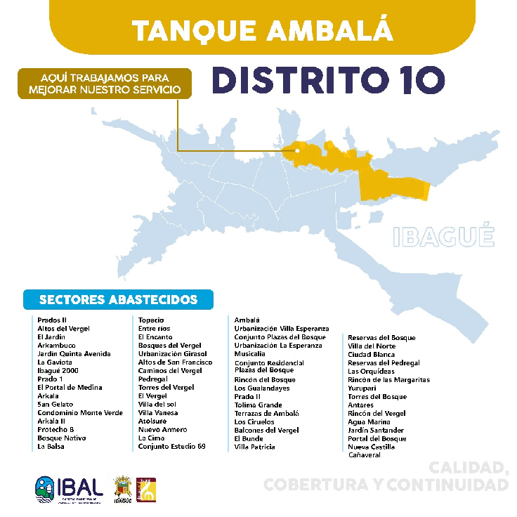 La Empresa Ibaguereña de Acueducto y Alcantarillado - IBAL, informó que este miércoles 28 de mayo buena parte de los barrios de la ciudad estarán sin el suministro de agua debido al lavado y mantenimiento de los tanques.